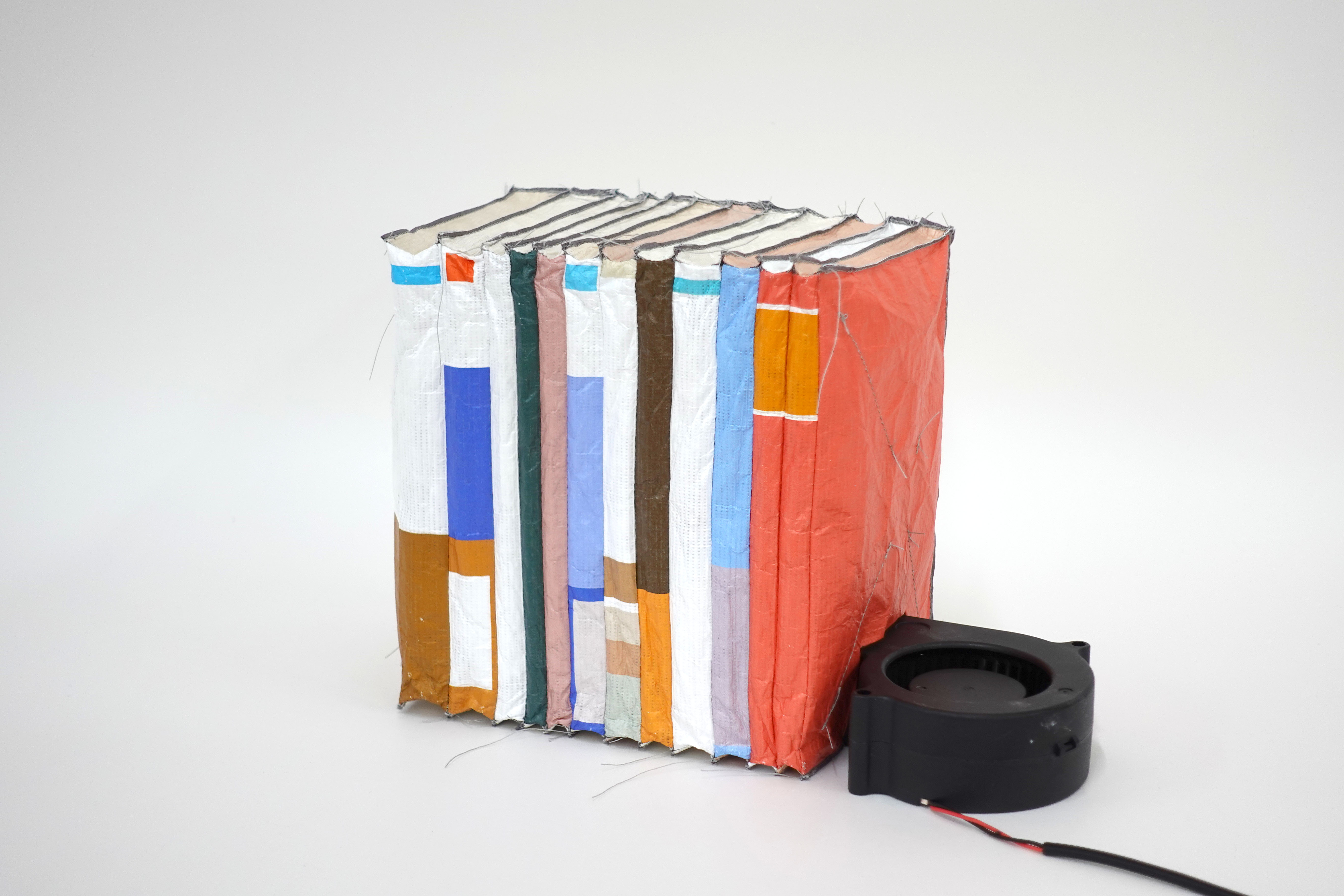 ダミーの表面には思考空間において既に変容して解像度の間引かれたイメージが施され、送風圧と内部支持構造の反相互作用によって造形が立ち上がる。
