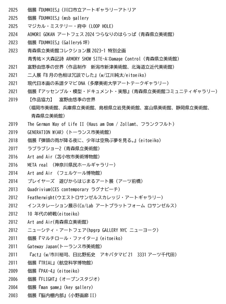 「DUMMIES」は、軍事用ダミーバルーンに端を発する。敵の目を欺くために兵器を模したその構造物は、鋭さを失った中空の張りぼてであり、そこに在ることを不確かに主張する視覚的虚構だ。