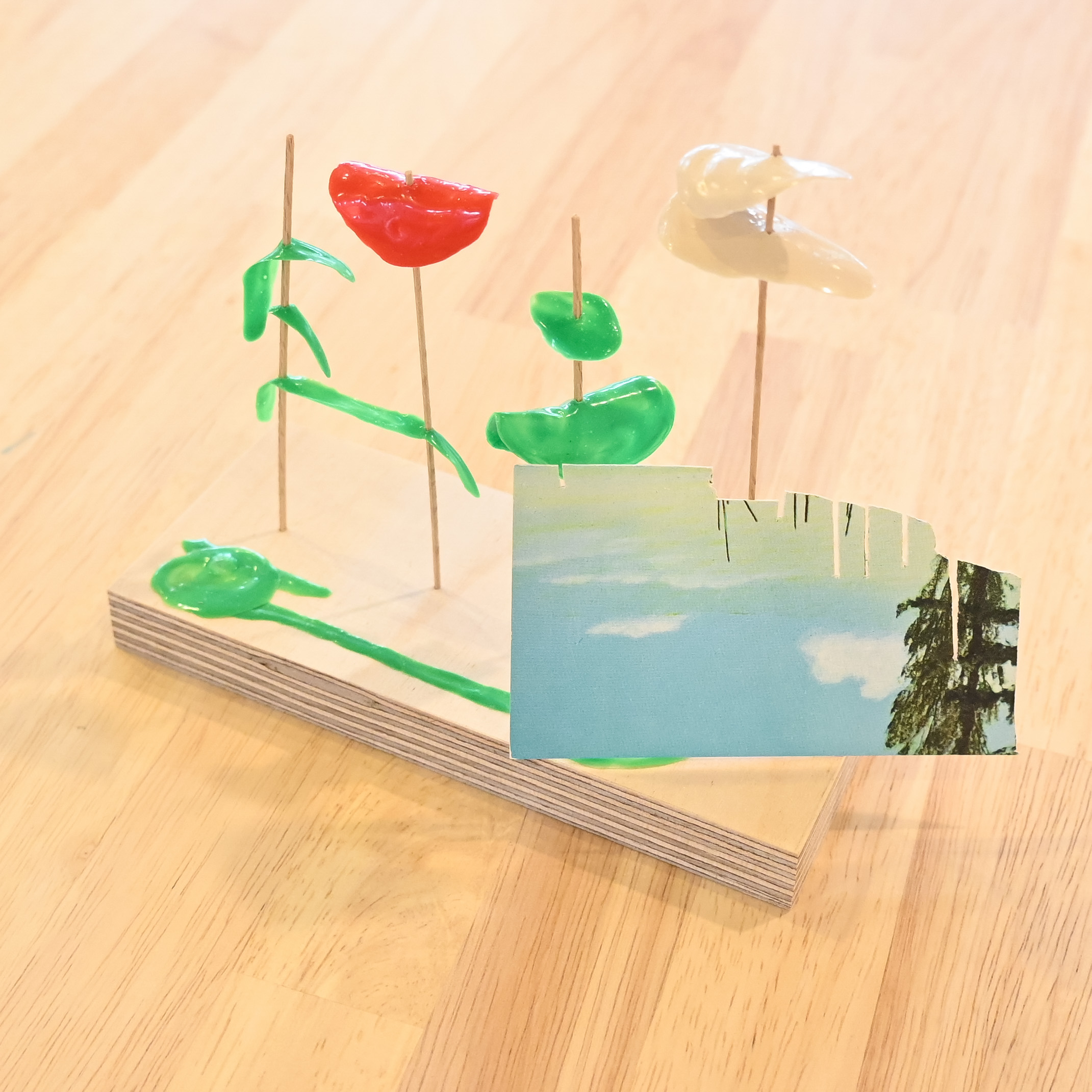 外川麻未 「A Small landscape #3」 2020 / 紙, プラスチック, 木, アクリルレジン, ポストカード
