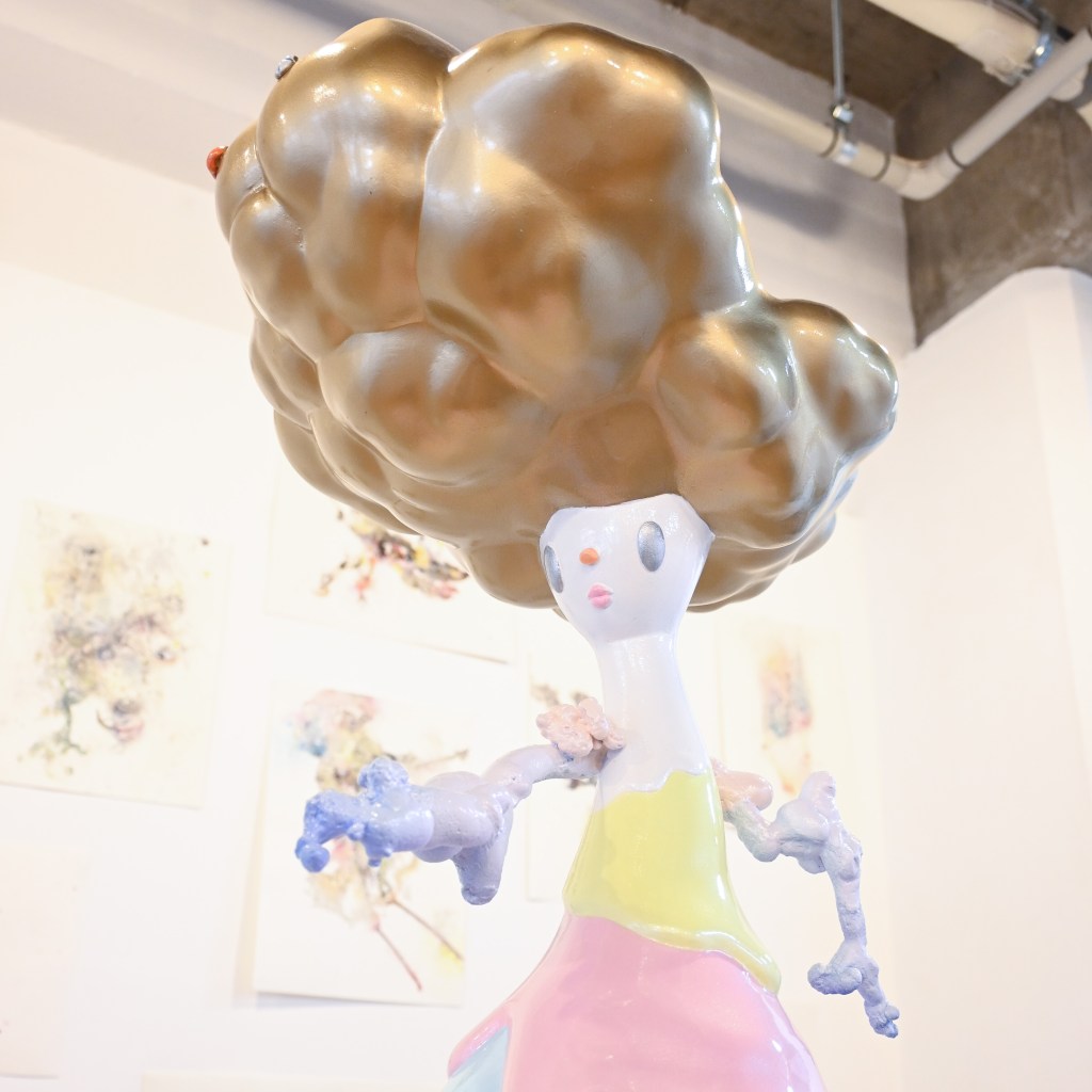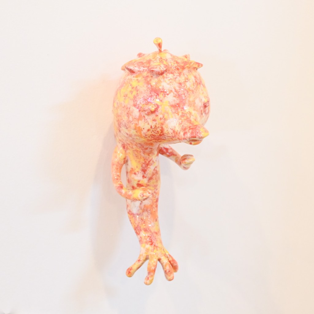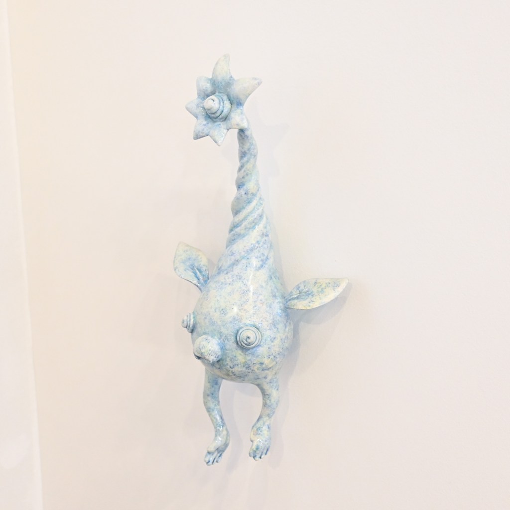 いしばしめぐみは自身の経験や記憶、心情を題材とし彩色豊かな立体作品を制作する作家です。独特な感性で製作されたカラフルな作品たちは観る者を楽しく困惑させます。可愛いような不気味なような、動物なのか妖怪なのか、人間なのか異星人なのか、一見しただけでは理解しきれない多くのなんだろう「?」に脳内が支配されます。不可解でありながらも親しみある多様でエネルギッシュな彫刻たちは現代社会をユーモラスに反映しつつ、私たちが普段見逃してしまっている「何か」について言及しているようにも感じられます。是非ご高覧頂けますよう宜しくお願い申し上げます。