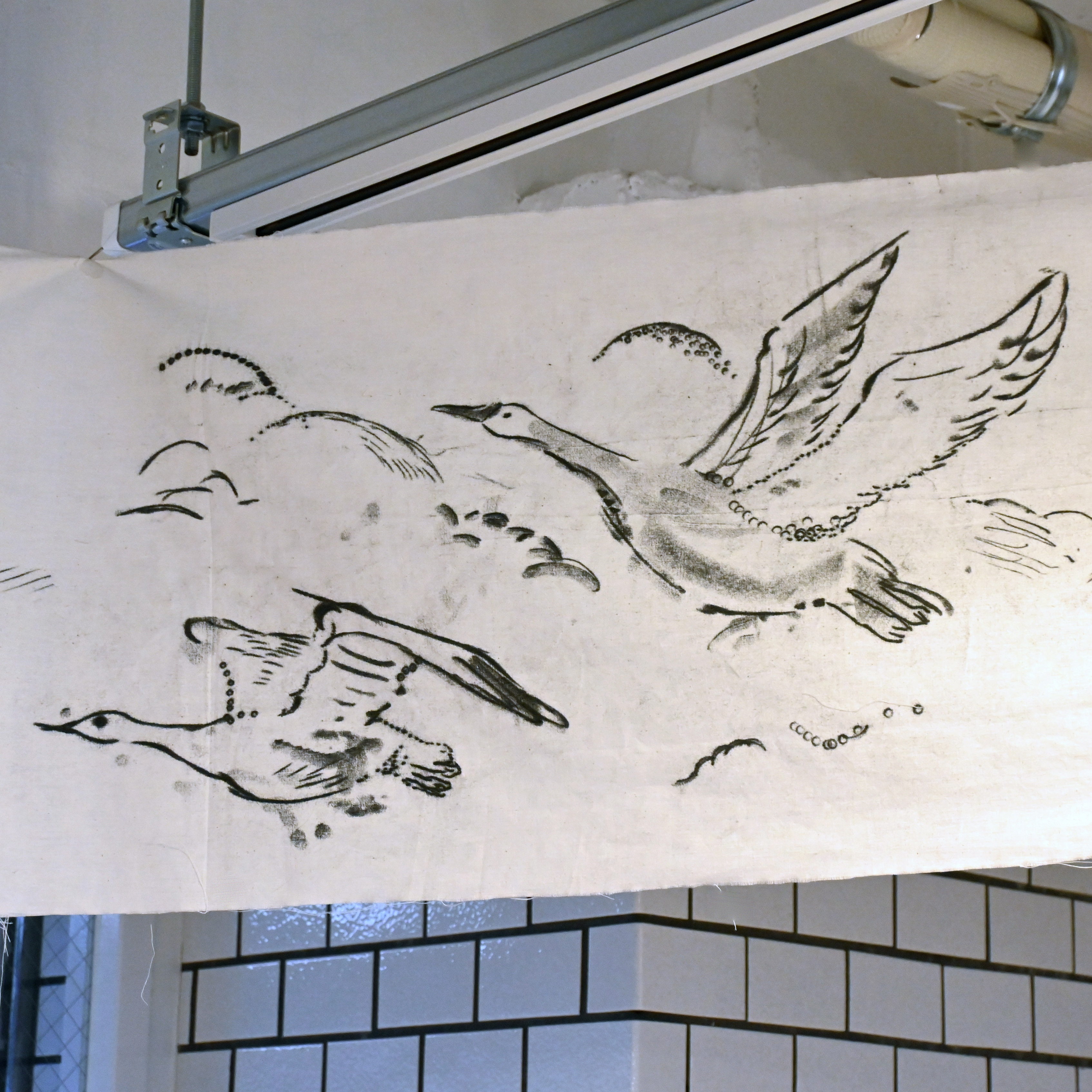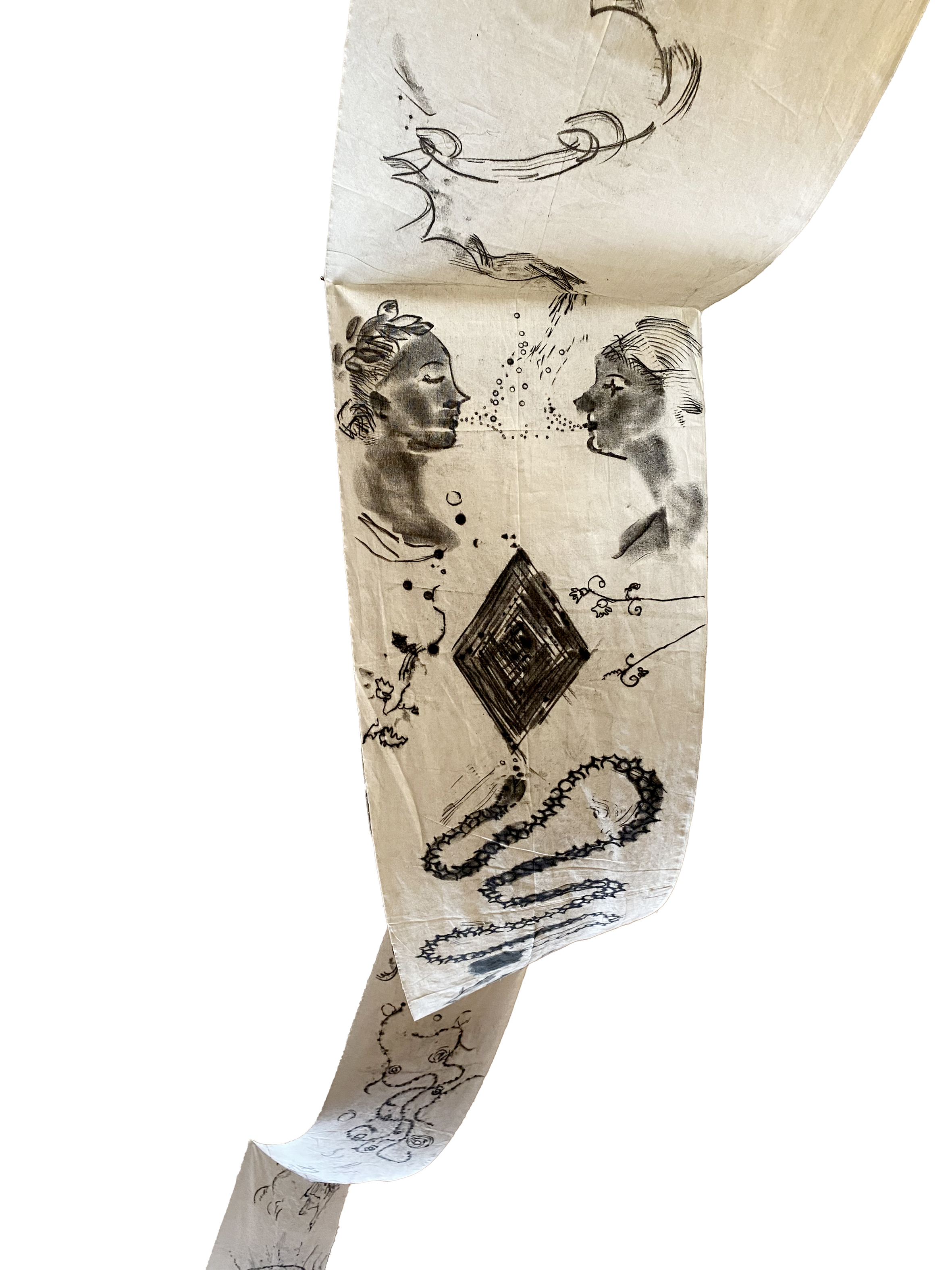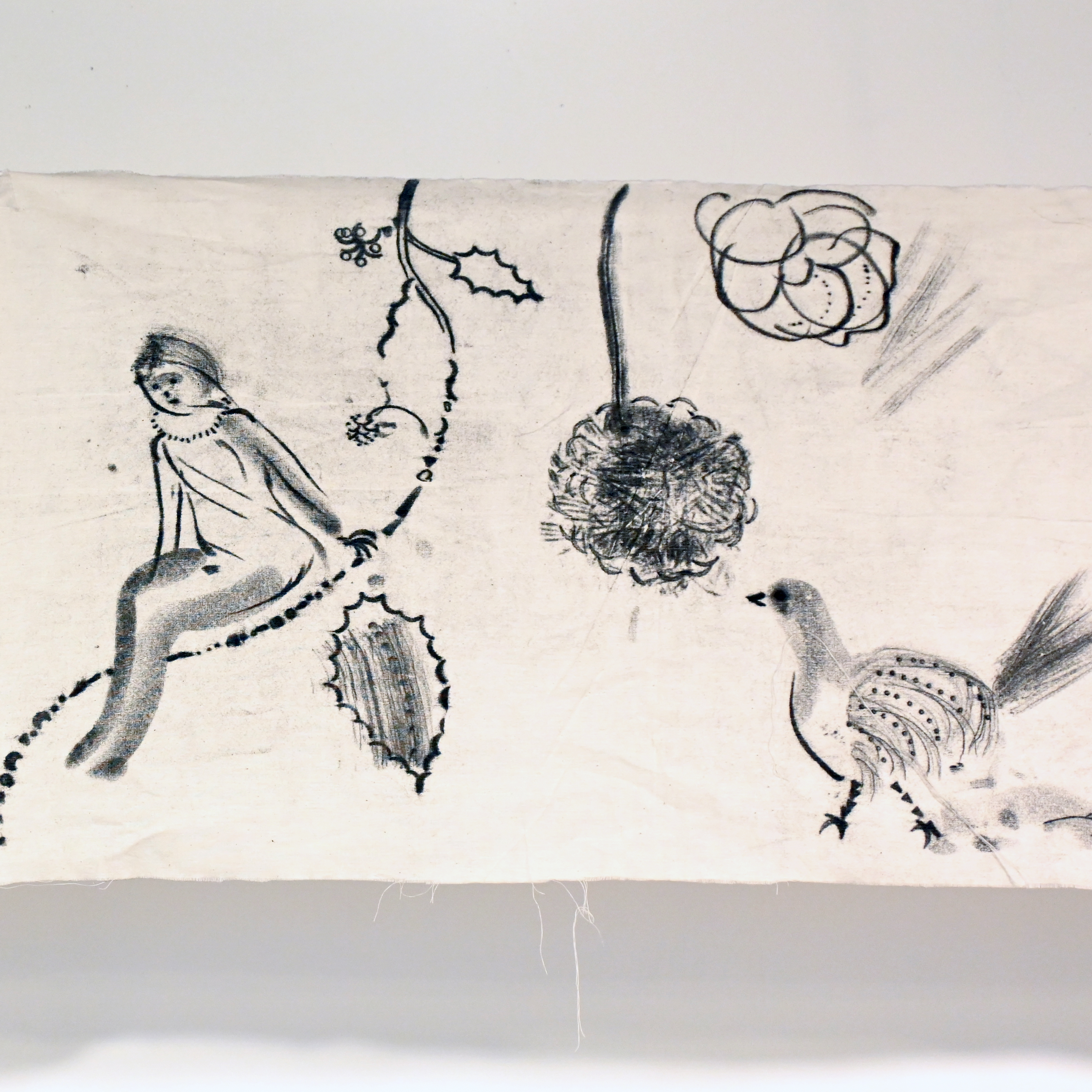 神話やアニミズムをベースとして制作される数多の作品は、軽快でありながら力強さを感じさせます。本展覧会で展示される“圧痕版画”と作家に名付けられた12メートルの作品は、指とスタンプ台を使った独自の方法論によって制作されています。これらユニークな作品は、即興性と実験的試みによって生み出され、漠とした根源的な要素を内包しつつある種のユーモアとエンターテイメント性を感じさせるものとなっています。是非この機会にご高覧頂ければ幸いです。
