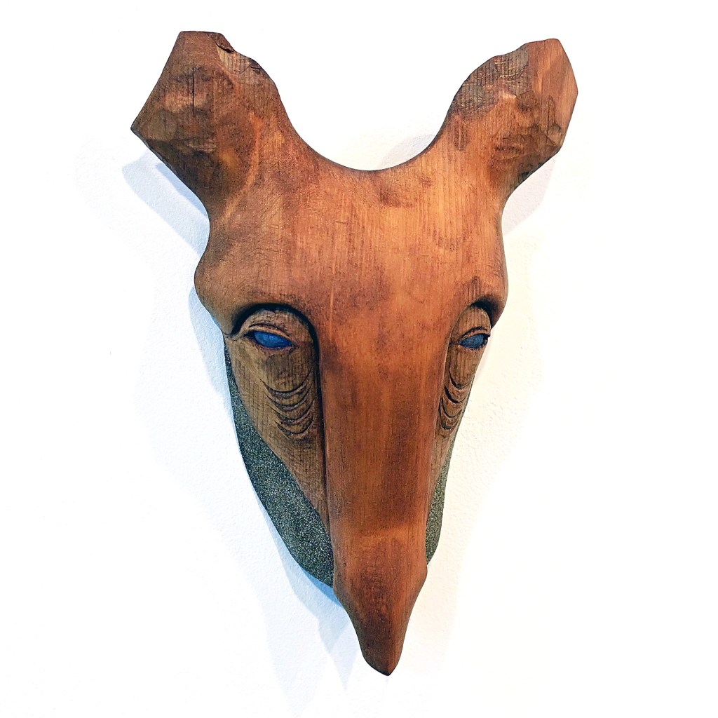 「ultima ULTRA」木彫(ヒノキ),拭漆,彩色,砂/2024