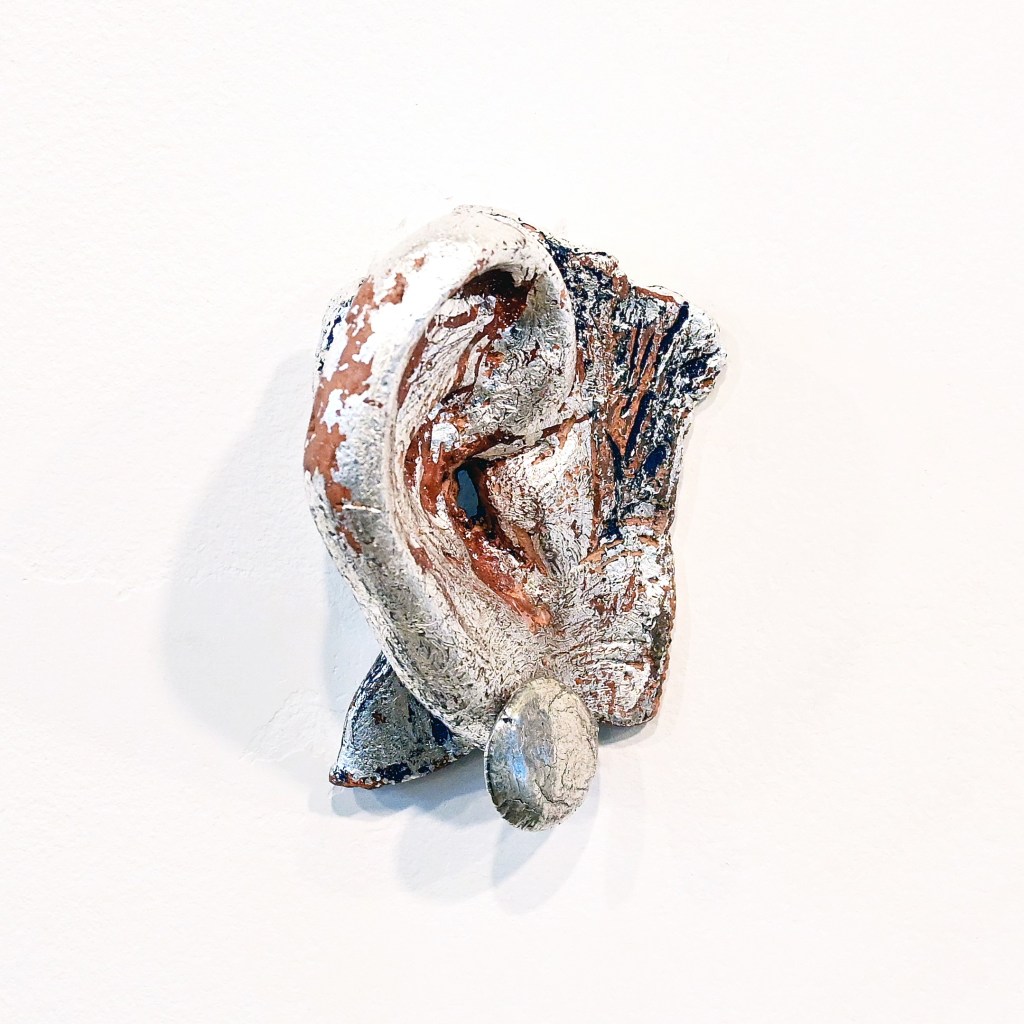 「piccola conchighia」陶彫(テラコッタ),銀箔,彩色/2024