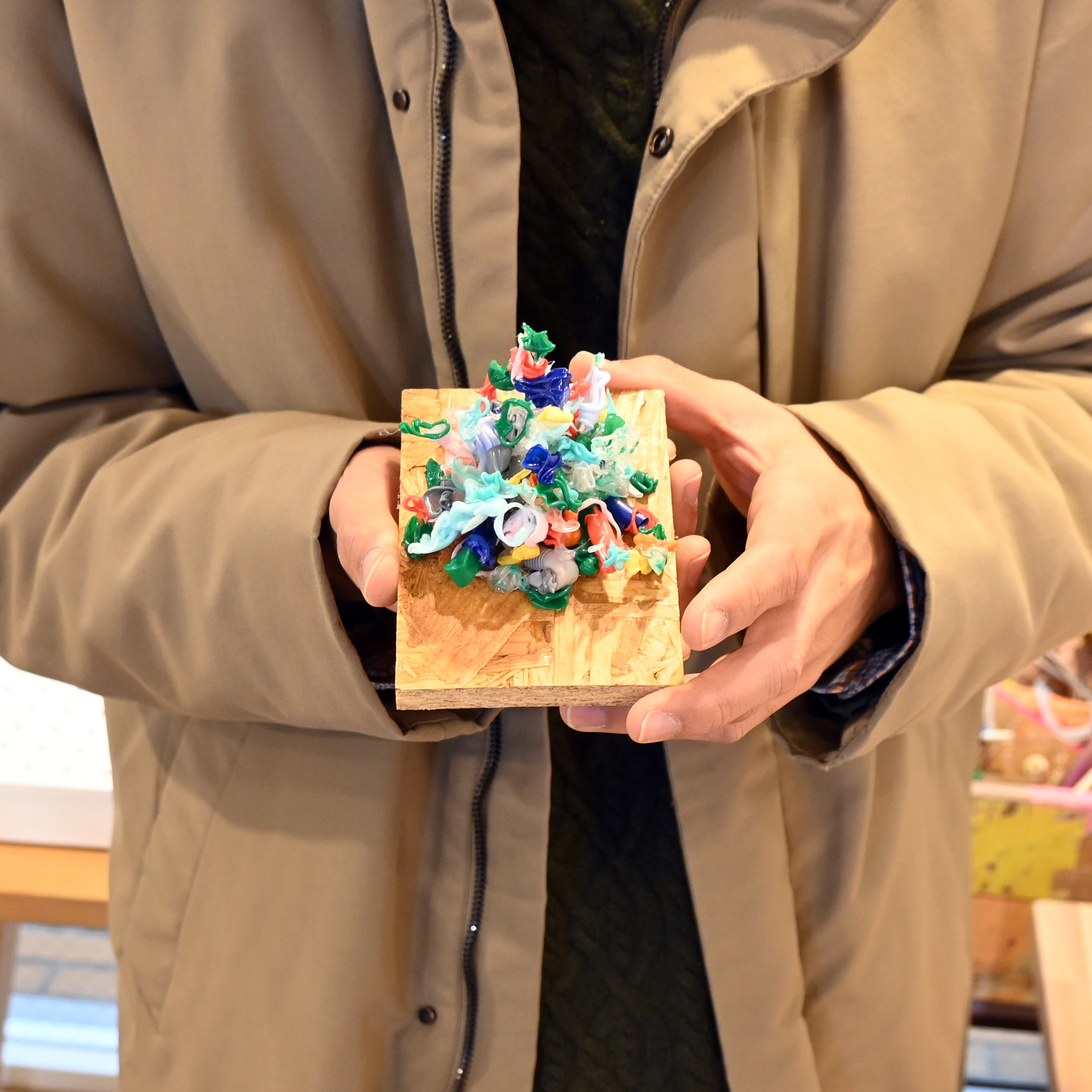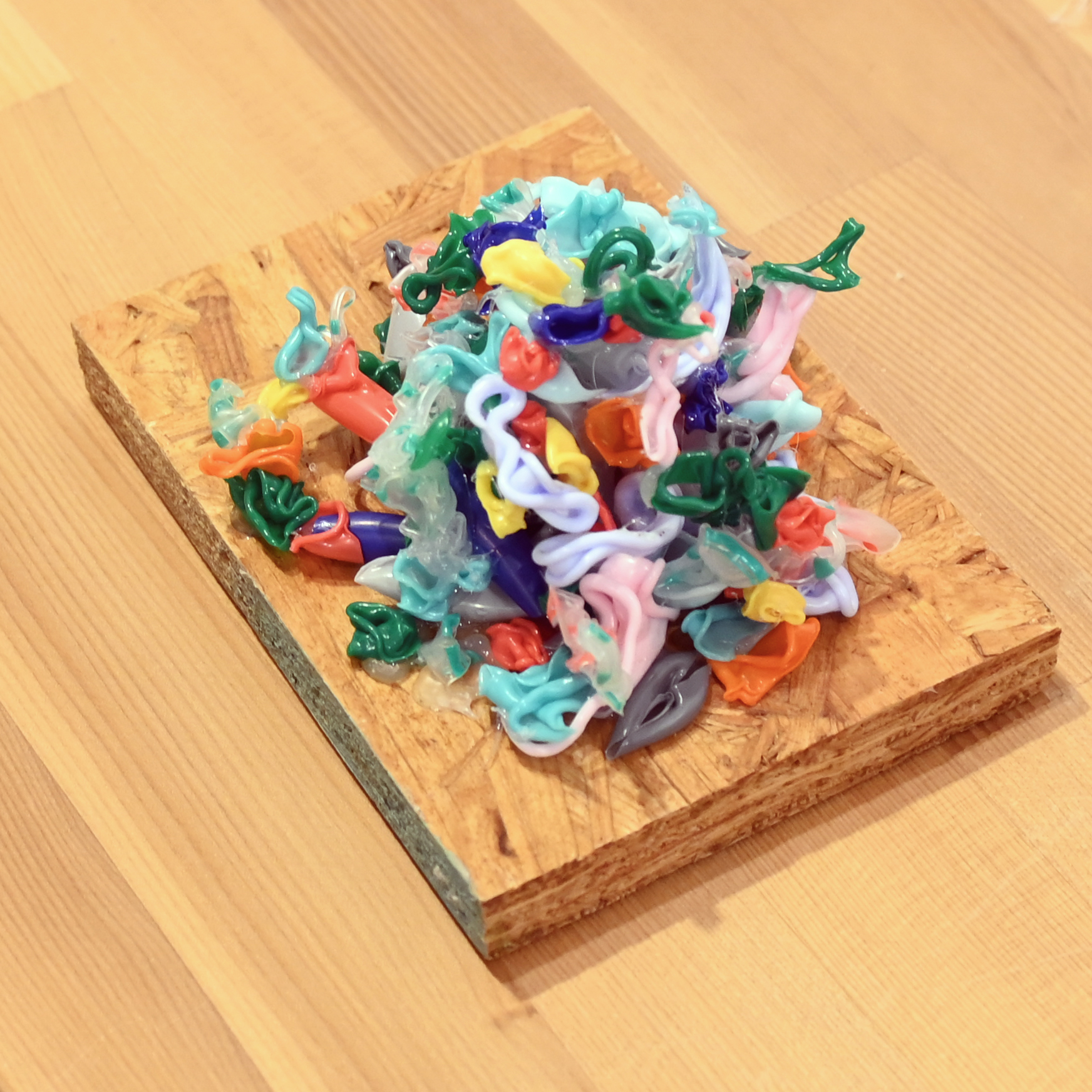 ボクの作品、「Small good things」は身の回りにあるものを気軽に用いることが多い。その中でも、多く用いられることが多いものの一つがプラスチックです。プラスチックは熱を加えるとぐんにゃりします。飲み物を飲む時に用いられるストローもそのうちの一つ。ストローは太さ、素材の厚さ、長さによって、熱を加えたときの形状の変化が違い、熱の加え方や長さによっても変化する素材です。これがなかなか奥が深い。今回のワークショップは熱を加えるところから、出来上がった変形ストローを今度は組み合わせて、立体をつくってみようというものです。けっこうオモシロイですよー。
