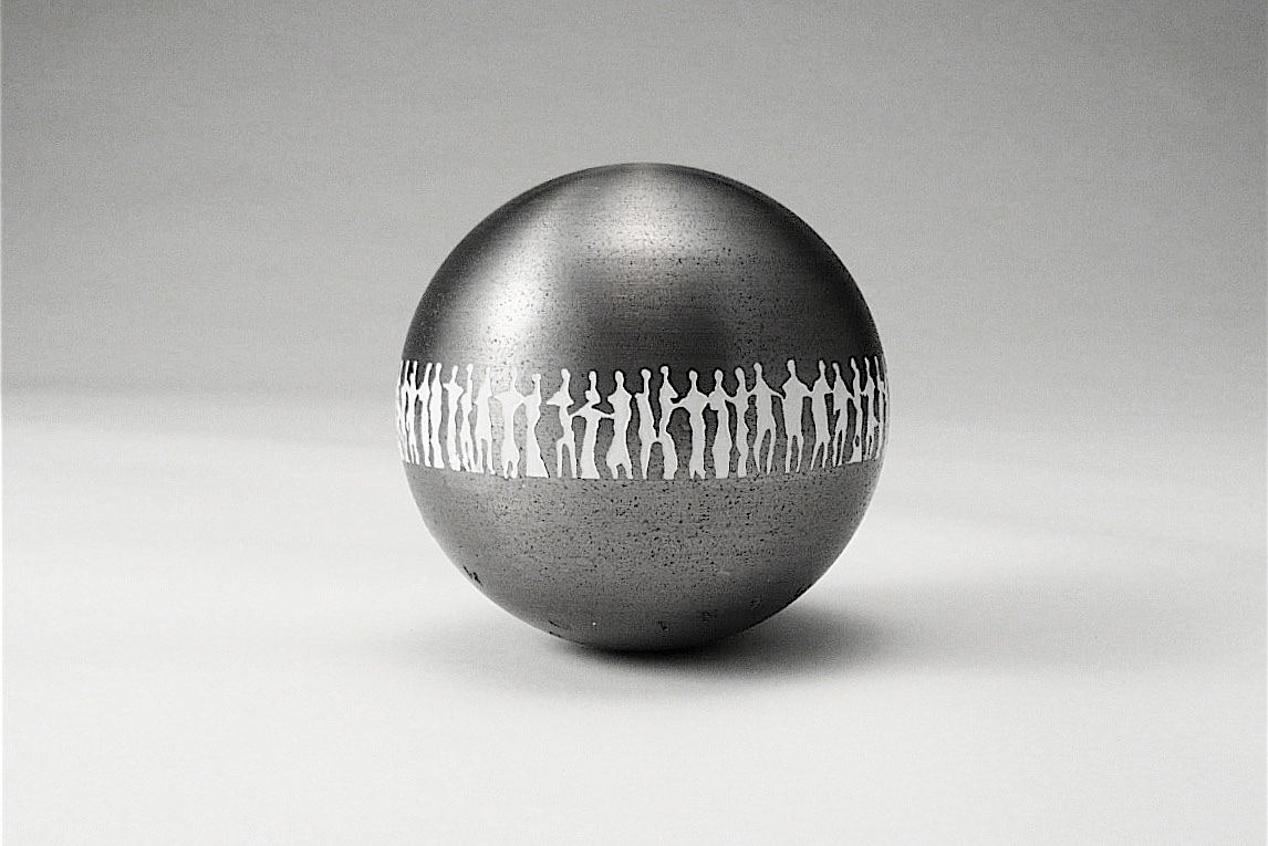 material:砲丸にサンドブラスト加工、色を象嵌